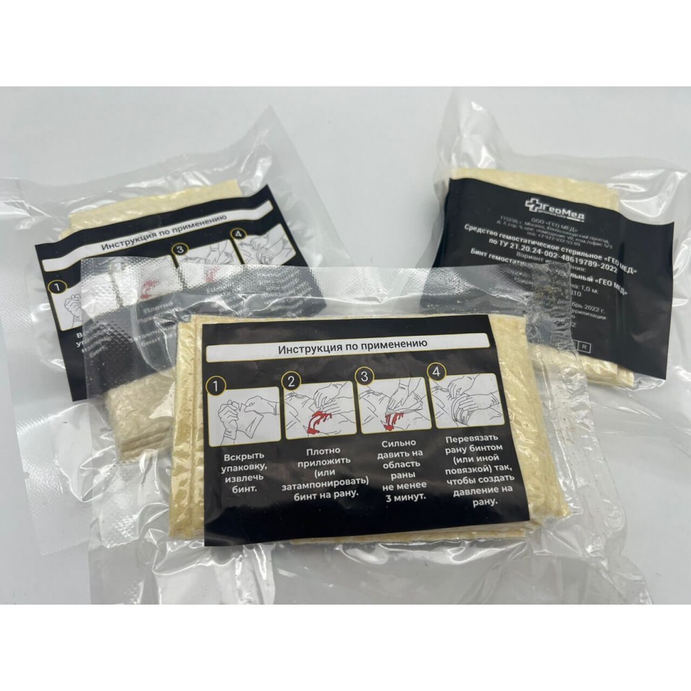 - Медицинский стерильный гемостатический бинт с хитозаном