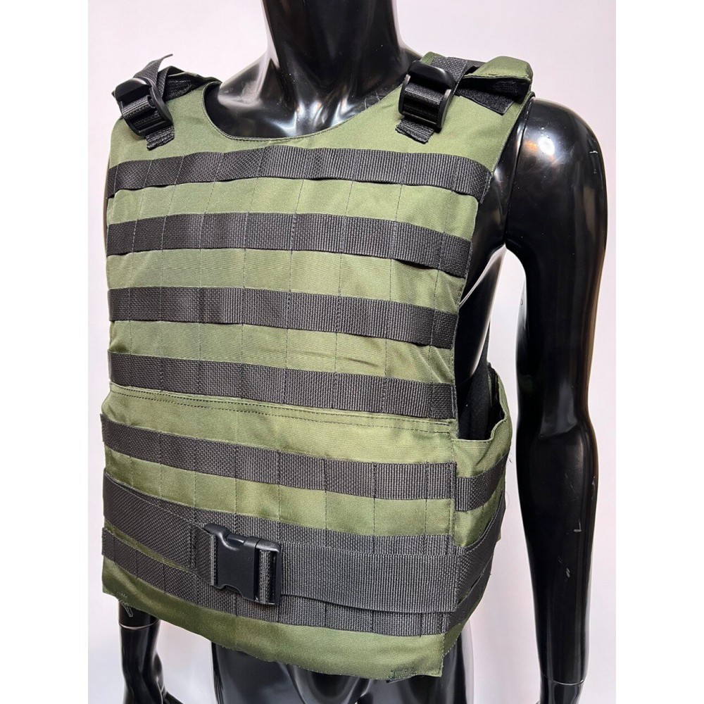 Бронежилет изготовлен из износоустойчивой ткани с водоотталкивающей пропиткой, обеспечивающей дополнительную защиту от влаги и повреждений. Он состоит из грудной и спинной частей, которые соединены широкими и удобными плечевыми элементами. Это позволяет подгонять бронежилет по фигуре, обеспечивая комфортное и идеальное прилегание к телу.