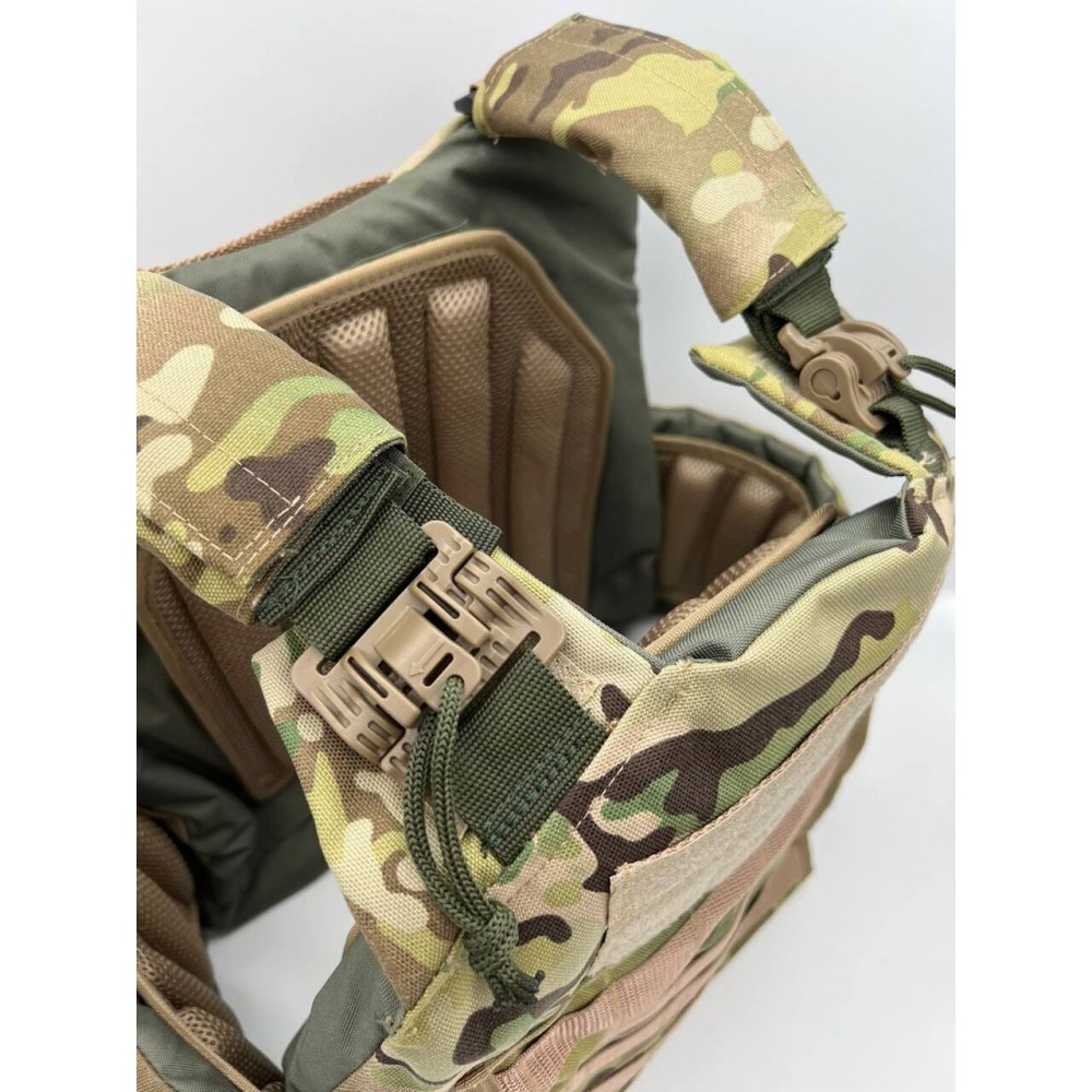- Разгрузочная система: Бронежилет оснащен разгрузочной системой "MOLLE", что позволяет пользователям прикреплять дополнительное снаряжение и аксессуары.