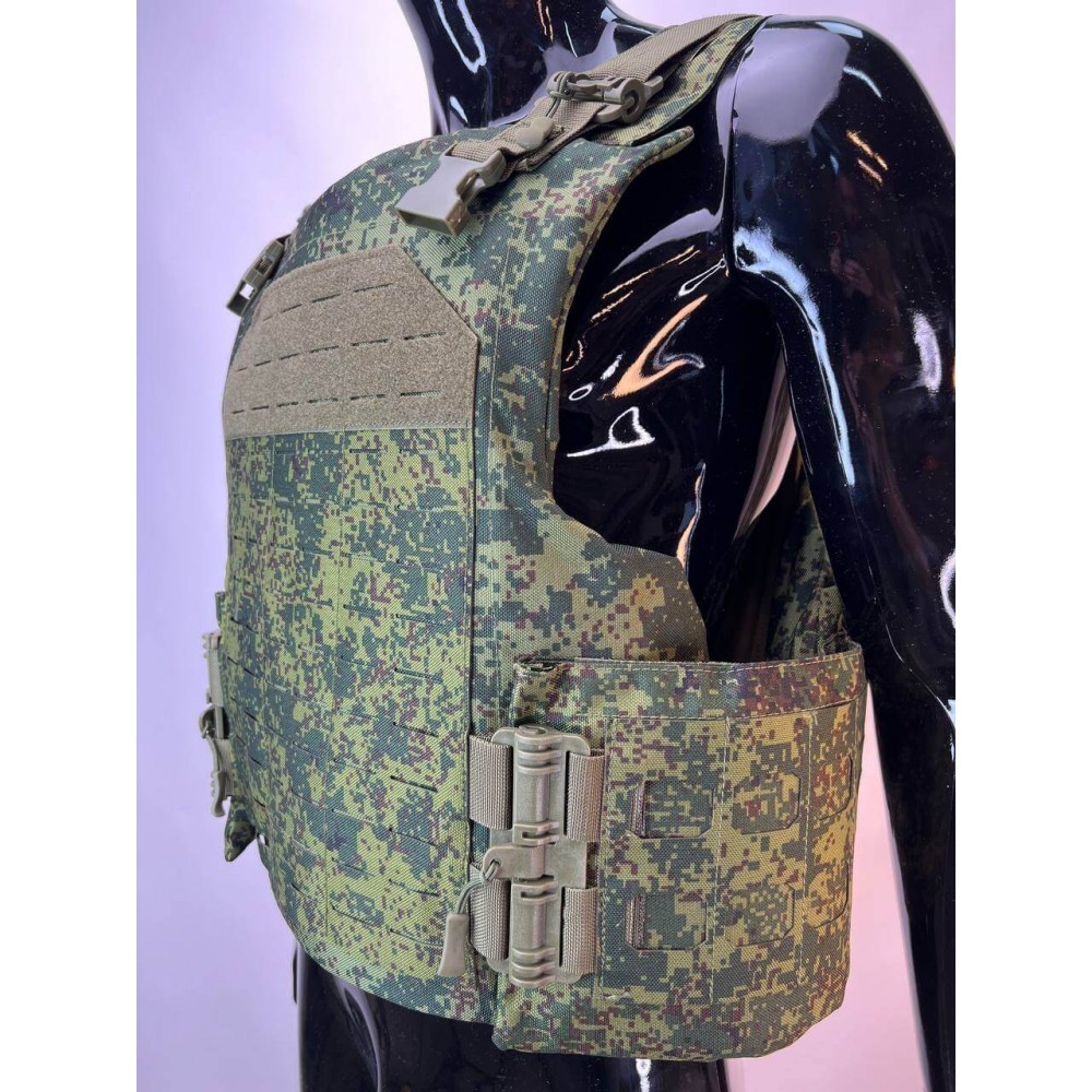 - Бронежилет из Оксфорда 1000d: Внешний чехол бронежилета выполнен из прочной ткани Оксфорд 1000d, обеспечивая износостойкость и водостойкость. Чехол также оснащен системой "MOLLE" для размещения дополнительного снаряжения.