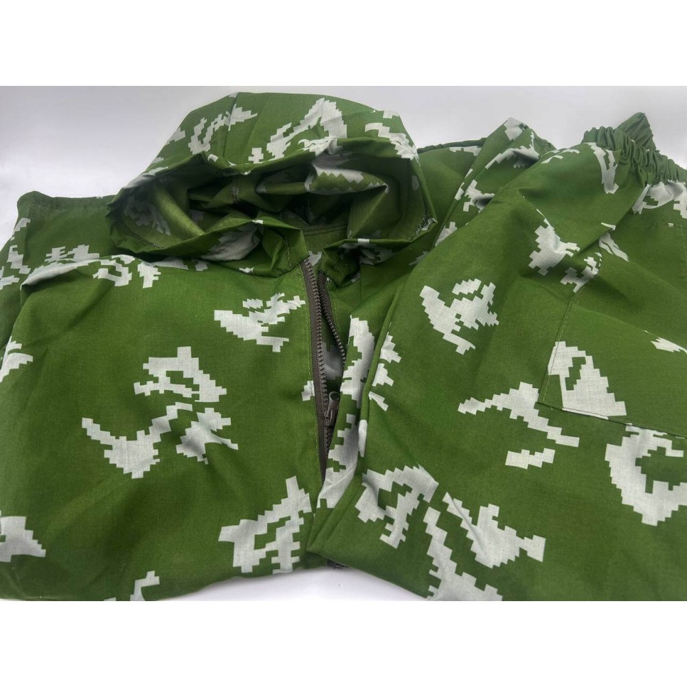 - Дизайн и расцветка: Маскировочный халат "БЕРЕЗКА" имеет дизайн, разработанный для обеспечения эффективной маскировки в разных лесных и зеленых средах. Его зеленая расцветка соответствует окраске березовой растительности.