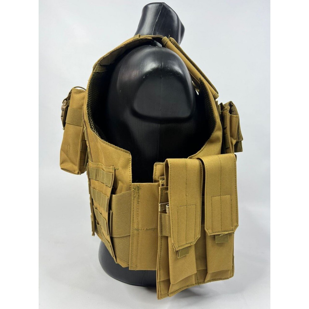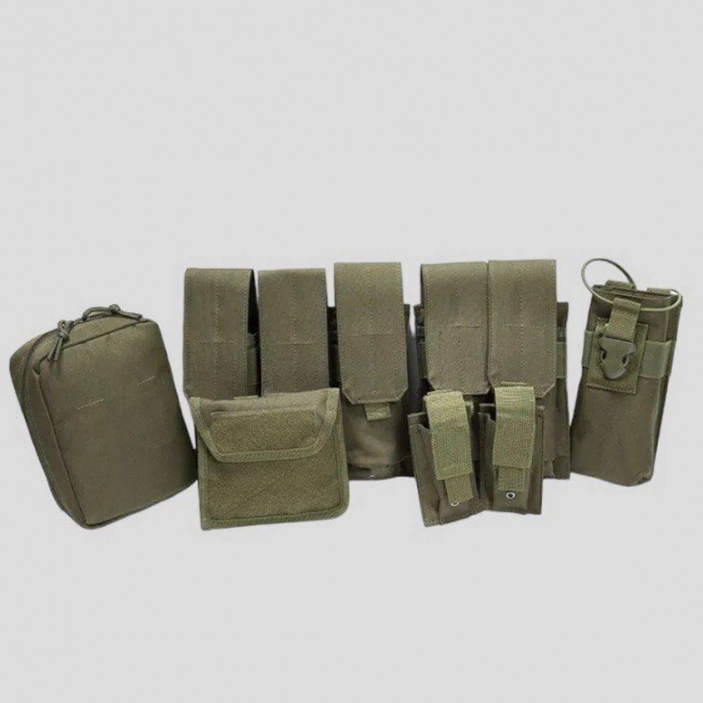 - Бронежилет укомплектован тактическими подсумками для крепления на систему Molle различного назначения и функционала в количестве 5 шт.